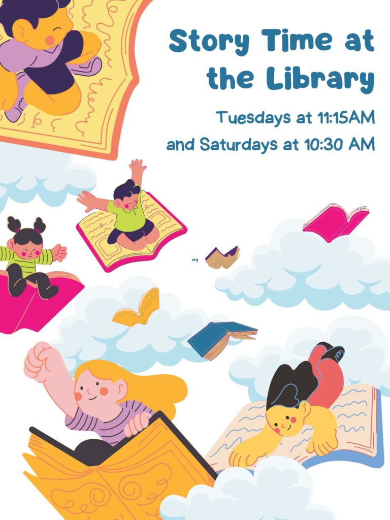 The weekly Storytime sessions continue on Tuesdays at 11:15 a.m. and Saturdays at 10:30 a.m. Children can listen to a story and take part in a craft activity with the library’s programmer. All ages are welcome, with parent supervision required for children under 12.